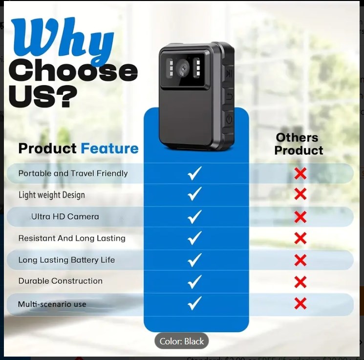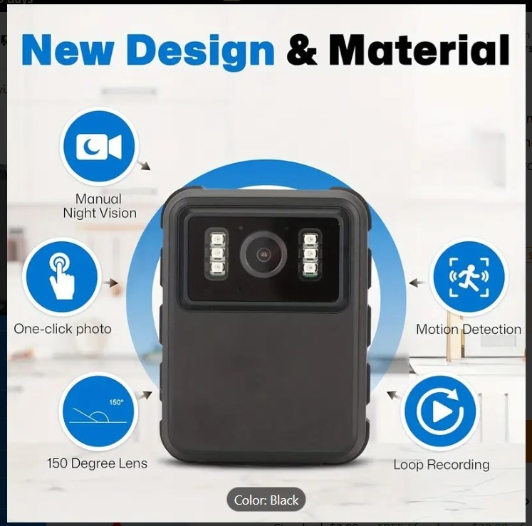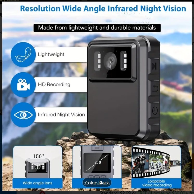 Panoramic camera, night vision, 150 ° Wide Angle, 1800mAh, Panoramic Camera with Audio and Video Recording, Used for Security, Personal Recording
