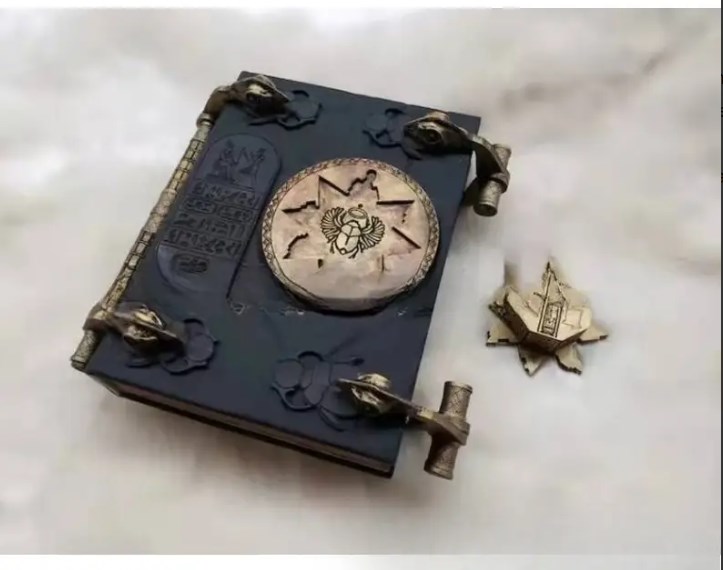 Handmade Egyptian Book Sculpture with Key - Resin Figurine for Home Office & Halloween Decor, Ancient Egyptian Style Art Statue, No Electricity Needed, Halloween Decoration, Office Decor, Mystical Design, Intricate Detailing, Decorative Piece, Collectors Item